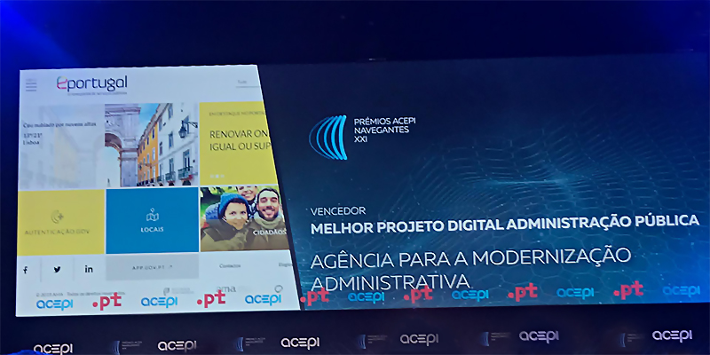 AMA - Agência para a Modernização Administrativa, IP [Administrative Modernization Agency] received the award of "Best Public Administration’s Digital Project", awarded by ACEPI - Associação da Economia Digital (ACEPI - Digital Economy Association), for the work done in development of the ePortugal portal.